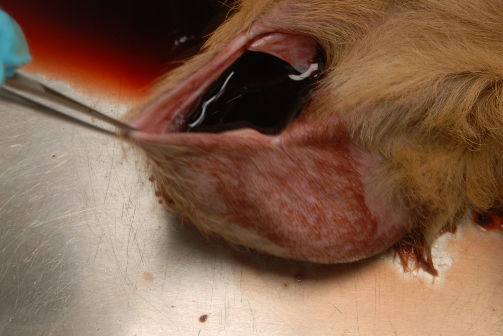 | Het hematoom met de onderhuidse bloeduitstorting. Foto: DWHC |