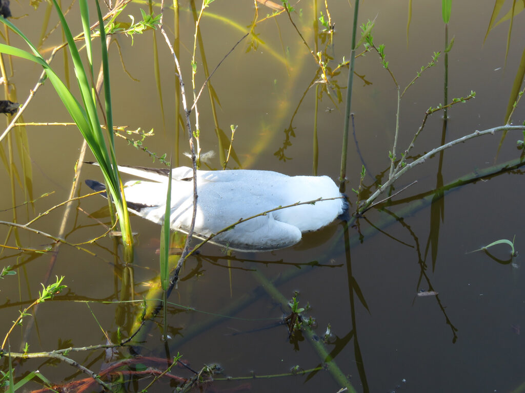 - Opruimen van karkassen. Organiseer in samenwerking met de lokale gemeente en de NVWA een veilige opruiming van potentieel grote aantallen karkassen. Check deze op aanwezigheid van metalen ringen en kleurringen en meld deze bij het Vogeltrekstation.