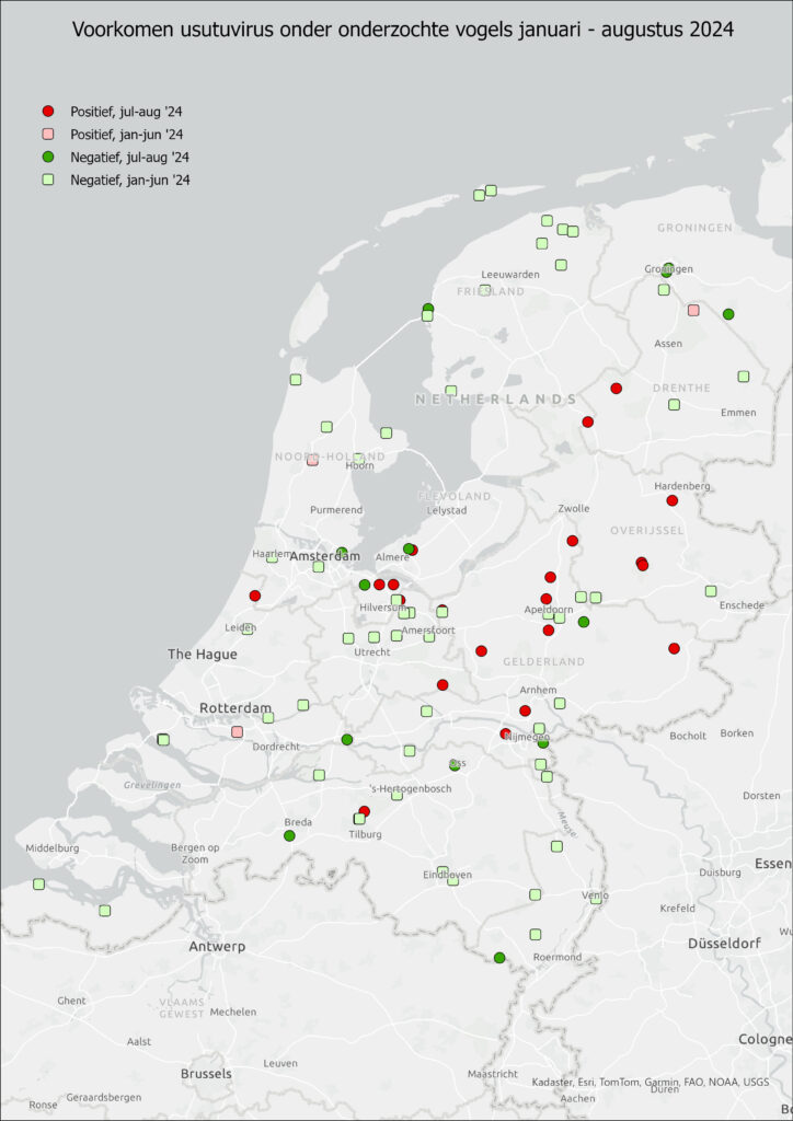 Gedurende deze periode zijn vogels, waaronder merels, opgehaald voor onderzoek naar de doodsoorzaak en de aanwezigheid van usutu. Het onderzoek naar de doodsoorzaak van deze vogels loopt nog, maar bij veel van deze vogels is usutu vastgesteld met een PCR.