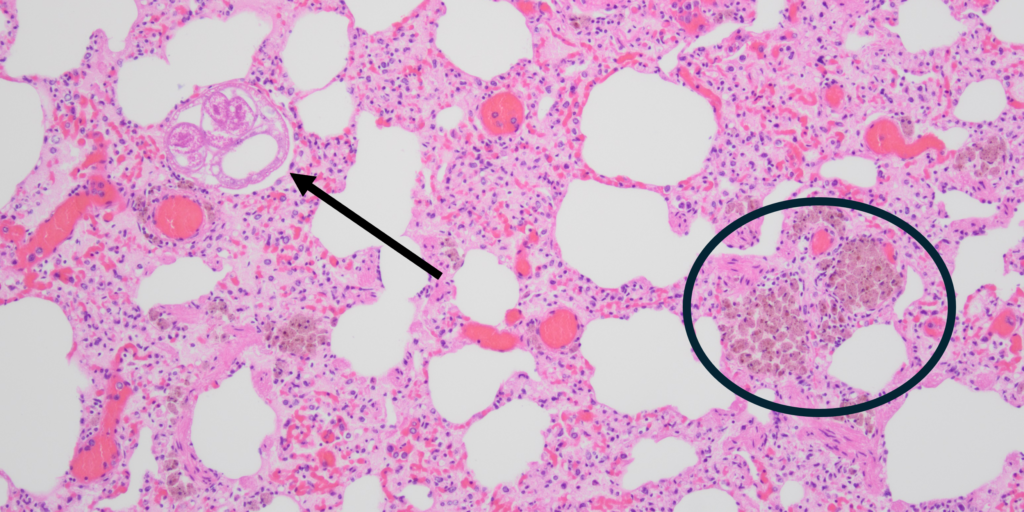 De das is overleden door een buikvliesontsteking die werd veroorzaakt door de bacterie Streptococcus canis. Hiernaast had ze een darmontsteking, lichte problemen met het hart en vocht in de longen (longoedeem). In de longen zijn ook wormen gevonden die hebben gezorgd voor een lichte longontsteking. Tijdens microscopisch onderzoek is een longworm gezien evenals ontstekingscellen door het inademen van zand (zie figuur). Verder had deze das een huidontsteking op haar buik door parasieten zoals vlooien en mogelijk luizen.