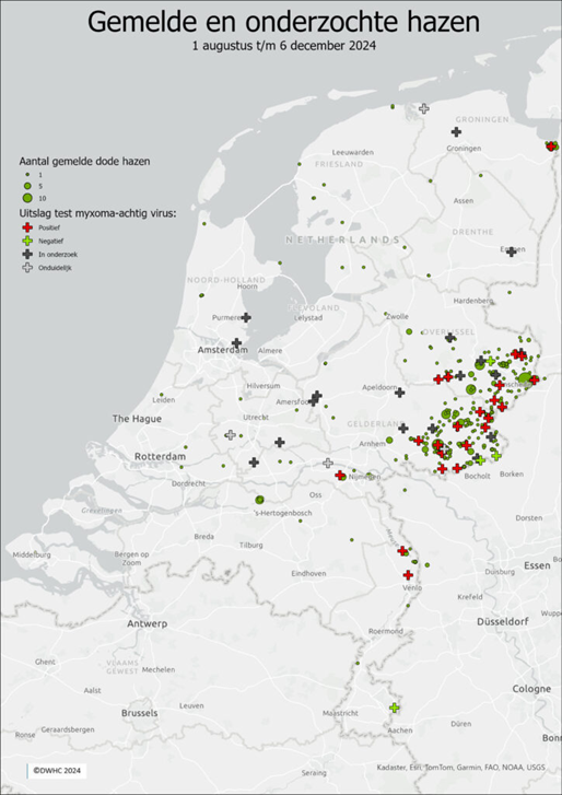 So far, most reports of sick hares with this myxomatosis-like symptoms are found in De Achterhoek. However, we also see sick hares with the same symptoms in other parts of Gelderland as well as other provinces.
