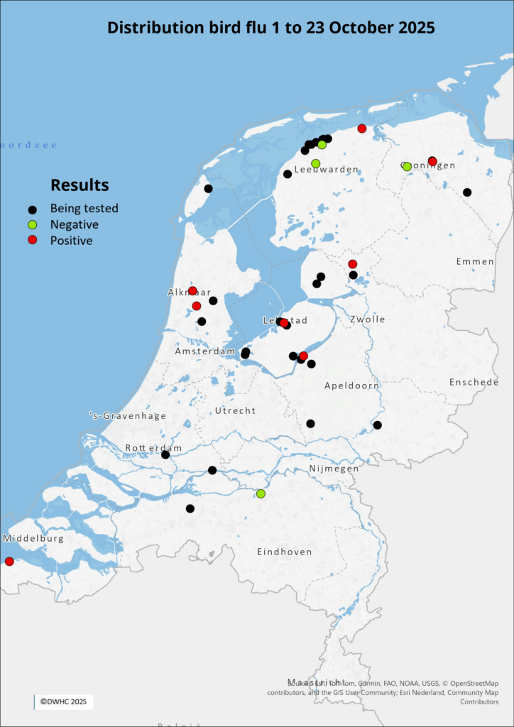 Since early October, the DWHC has been receiving reports of increased mortality and abnormal behavior among wild birds in the north of the Netherlands. Birds from across the country have been sent by the DWHC to the WBVR to test for bird flu.