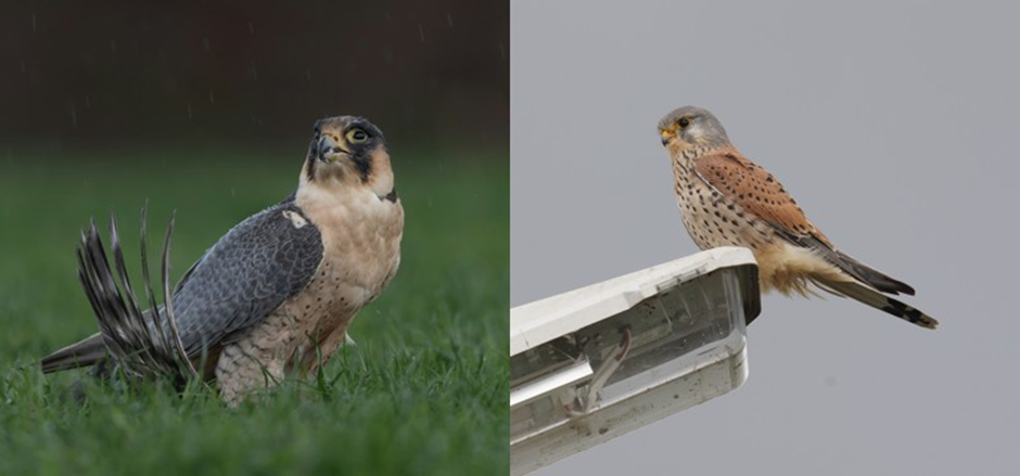 Picture Peregrine Falcon (left): Vincent van Zalingepicture Common Kestrel (right): Roy Slaterus (Sovon)