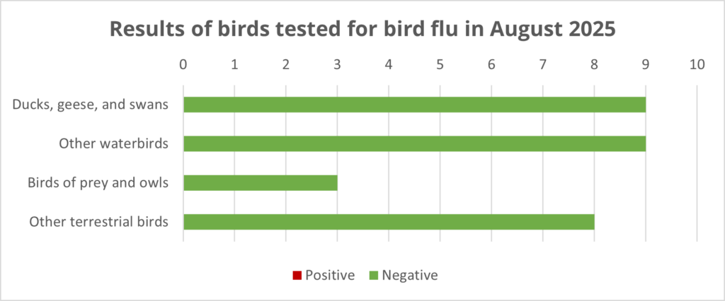 In addition, no mammals tested positive for bird flu this month, and there were no reported outbreaks of avian influenza among kept animals.