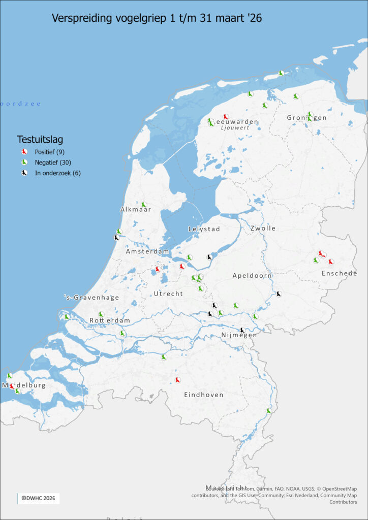 In maart is vogelgriep ook vastgesteld in gehouden dieren op pluimveebedrijven in Gelderland en Drenthe. Er zijn door de rijksoverheid verschillende maatregelen genomen tegen vogelgriep. Sinds 16 oktober 2025 geldt er een landelijke ophok- en afschermplicht in Nederland. Bij een pluimvee-uitbraak van vogelgriep legt de overheid een vervoersverbod op om de verspreiding van het virus te voorkomen. Klik hier voor een actueel overzicht van de gebieden waar een vervoersverbod geldt. Uit deze gebieden is het niet mogelijk om wilde vogels te verzamelen voor verder onderzoek.